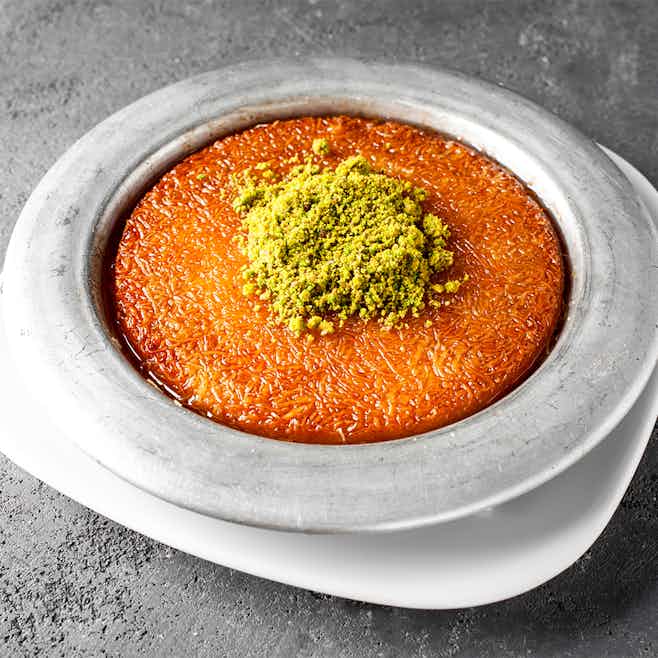 The Queen of Arabic desserts, Knafeh is the ultimate delicacy for the one with a sweet tooth. This is a sticky pastry constituting of gooey sweet cheese and then topped with saffron and chopped pistachios. This dessert, if you ask us, is a must try.