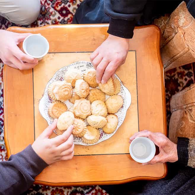 A kind of hot cake that is served with tea or coffee, Khanfaroosh was once meant exclusively for joyous occasions. Cardamom, saffron, and rosewater are the major flavoring ingredients in this preparation. A proper Khanfaroosh is generally light and fluffy.