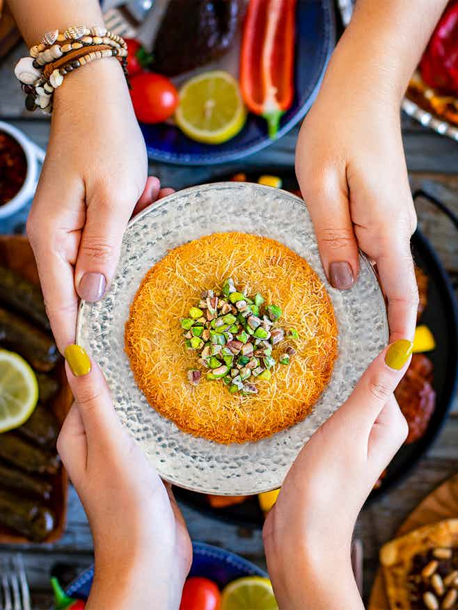 A sweetmeat that’s typical to the Arab region, the Knafeh is often referred to as the Queen of Desserts. It is an interesting combination of sweet and salt syrup, melted cheese, dough, and pistachios. Feras Aldiyafa Sweets is known for this delicacy and is a must-try when in Dubai.