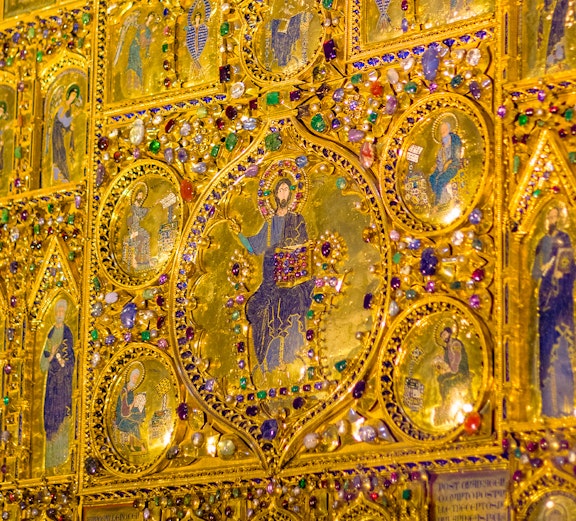 Marvel at 8,000 sq. meters of shimmering mosaics covering every dome, arch, and vault.
