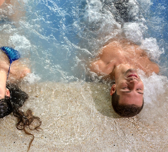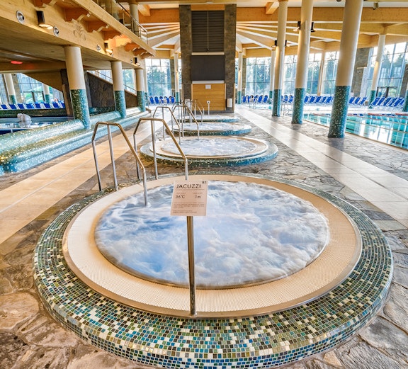 Take advantage of access to the resting areas, like the jacuzzi pool or the salt chamber and salt cave for Halotherapy which helps you relax and can aid heal skin conditions.