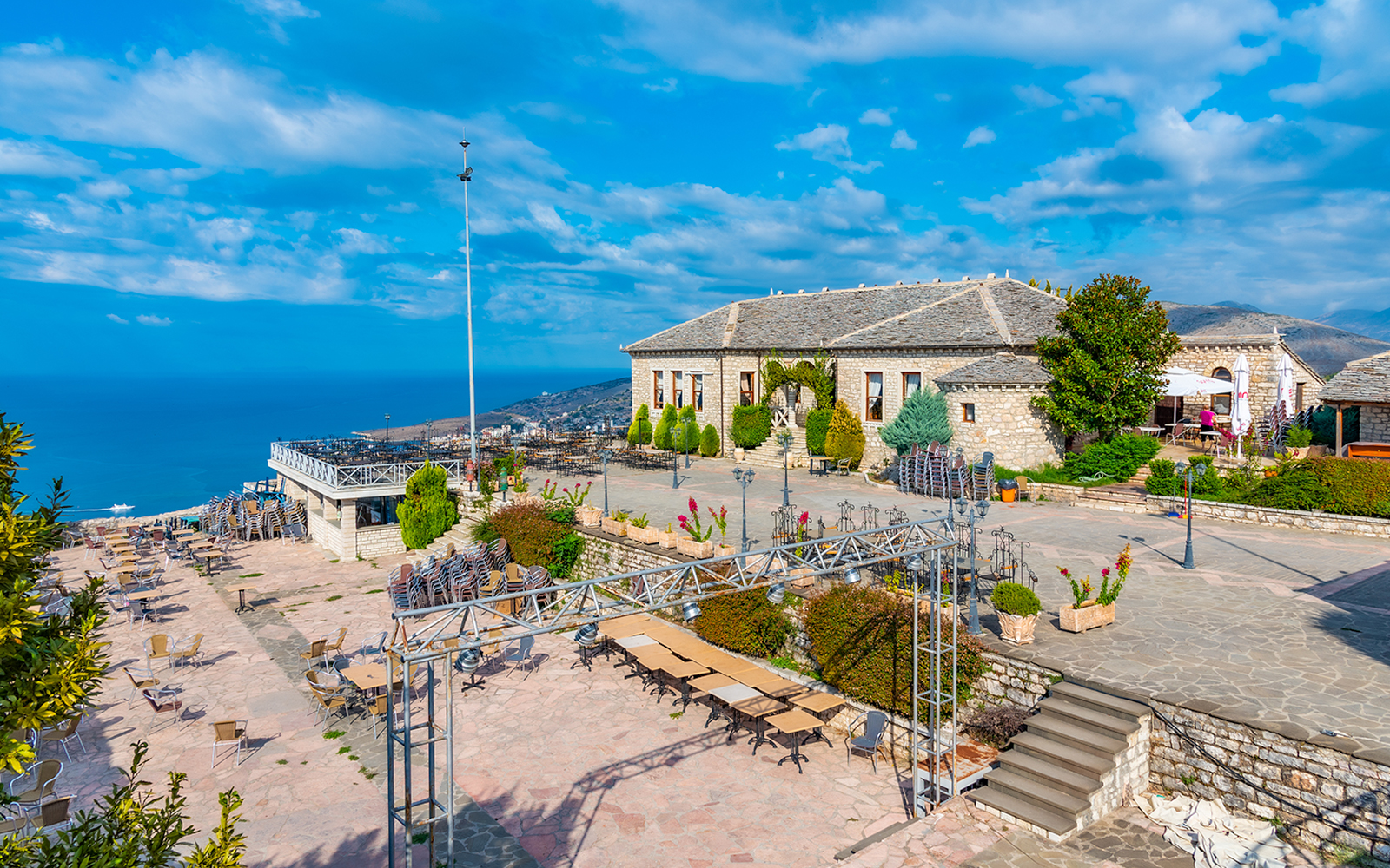 Bestig Lekursi-slottets stenvolde og få en fantastisk udsigt over Saranda med de røde tage og det glitrende Ioniske Hav, der strækker sig til Korfu.