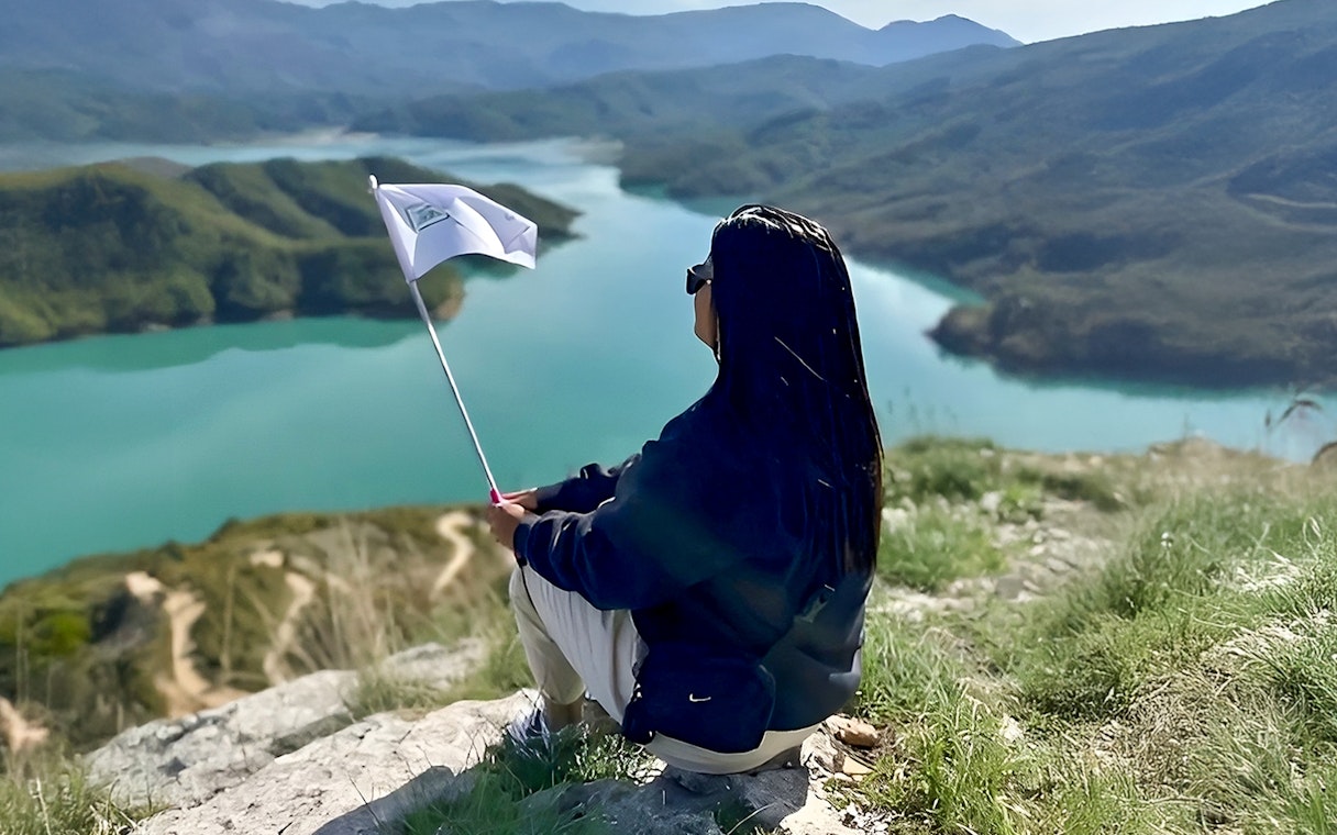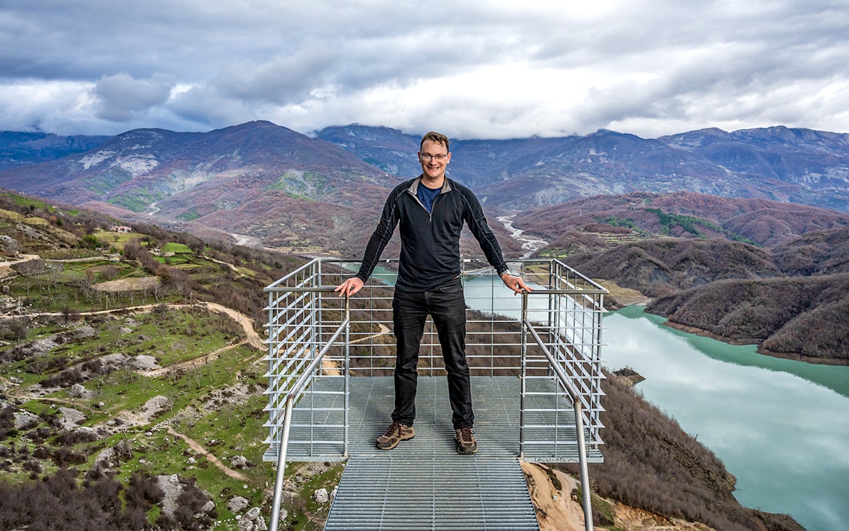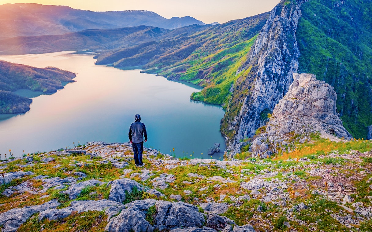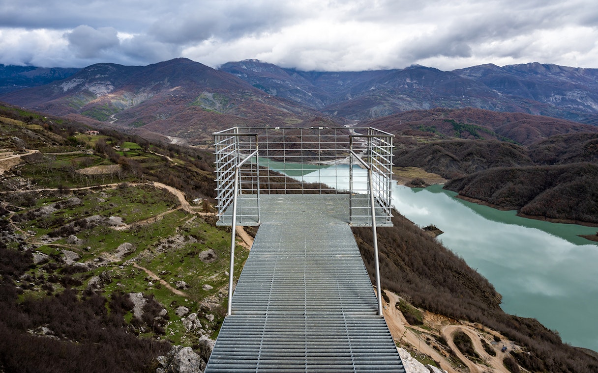 Hold pause for at beundre søens levende blå overflade, et reservoir vugget af klipper, der stadig leverer en stor del af Tiranas drikkevand i dag.