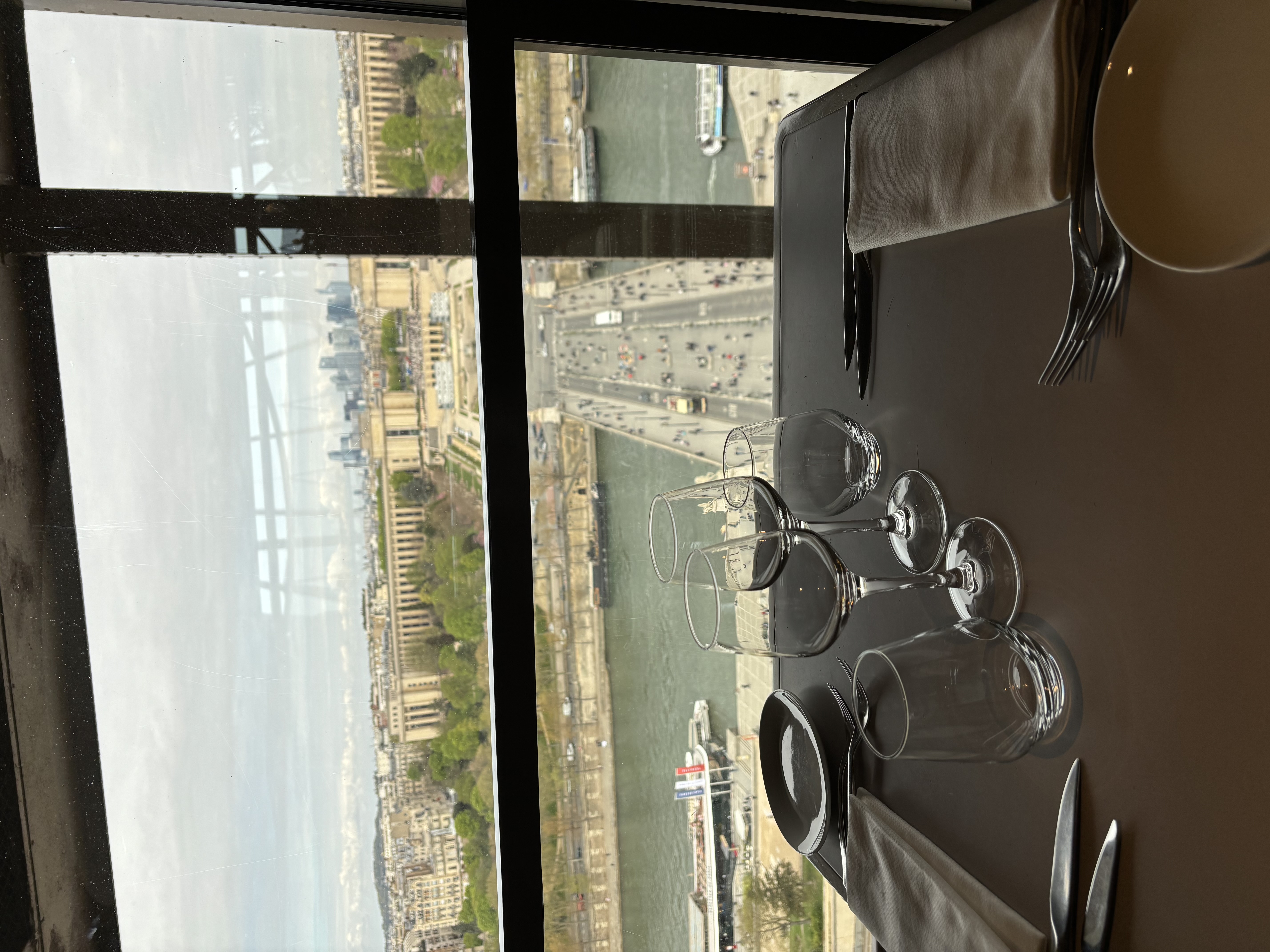 Nehmen Sie einen Tisch am Fenster, um tagsüber einen spektakulären Blick auf die Seine und andere Pariser Sehenswürdigkeiten zu genießen.