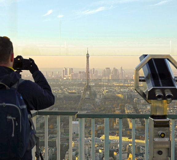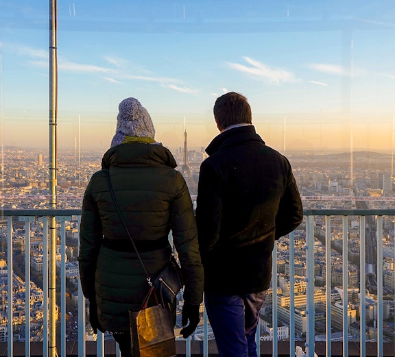 Für einen unvergleichlichen, zentral gelegenen Blick auf den Eiffelturm und die Pariser Wahrzeichen, die ihn umarmen, gehen Sie in den 56. Stock und auf das Dach!