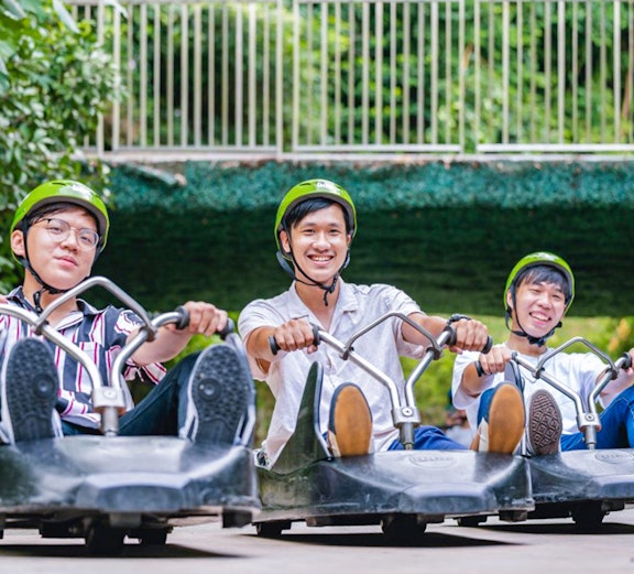 Versammeln Sie Ihre Freunde zu einem der besten Outdoor-Abenteuer Singapurs, dem Skyline Luge und dem viersitzigen Open-Air-Skyride, wobei Sie die Wahl zwischen zwei, drei oder vier Runden haben.