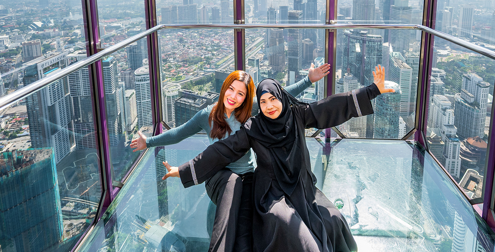 Disfruta de vistas panorámicas de lugares emblemáticos como las Torres Gemelas Petronas, Merdeka 118 y el horizonte del valle del Klang, tanto de día como de noche.