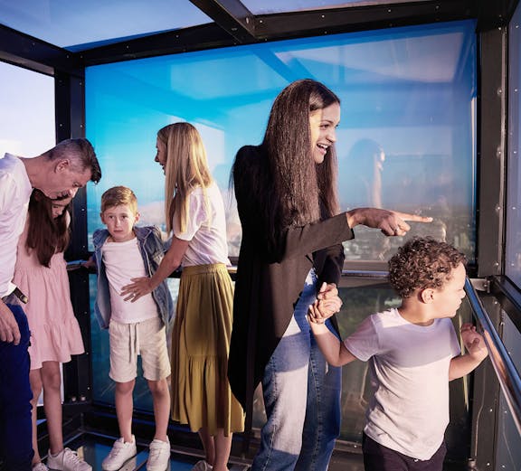 Sobrevuela 300 metros por encima del suelo en el cubo de cristal, el Edge, y disfruta de vistas panorámicas de la ciudad.