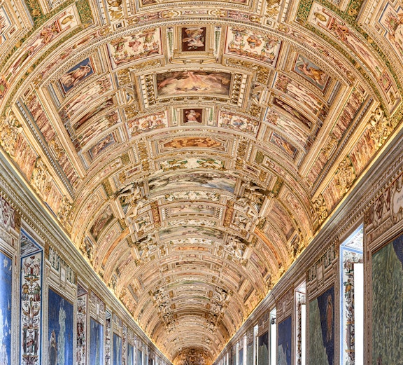 Explora los museos a tu ritmo, desde esculturas clásicas hasta frescos renacentistas en la Galería de los Mapas.