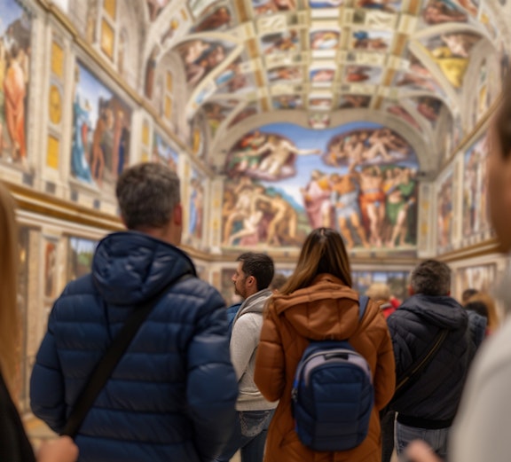 Finaliza tu visita en la Capilla Sixtina y admira el icónico techo con La Creación de Adán de Miguel Ángel.
