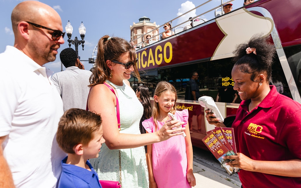 Montez à bord d'un bus à impériale, admirez la ligne d'horizon de Chicago à 360° et profitez des audioguides anglais ou espagnols qui racontent les histoires derrière les monuments emblématiques.