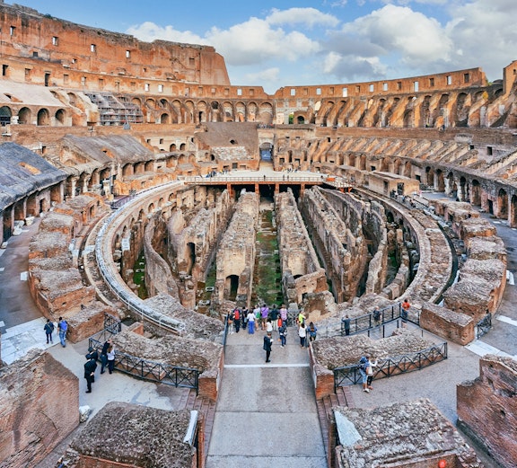 Entra nel Piano dell'Arena, il palcoscenico centrale del Colosseo, oppure aggiungi l'accesso alle Prigioni Mamertine con la relativa audioguida. Puoi anche scegliere l'ingresso in hosting per un inizio più agevole o passare a un tour con guida in inglese per un contesto più approfondito.
