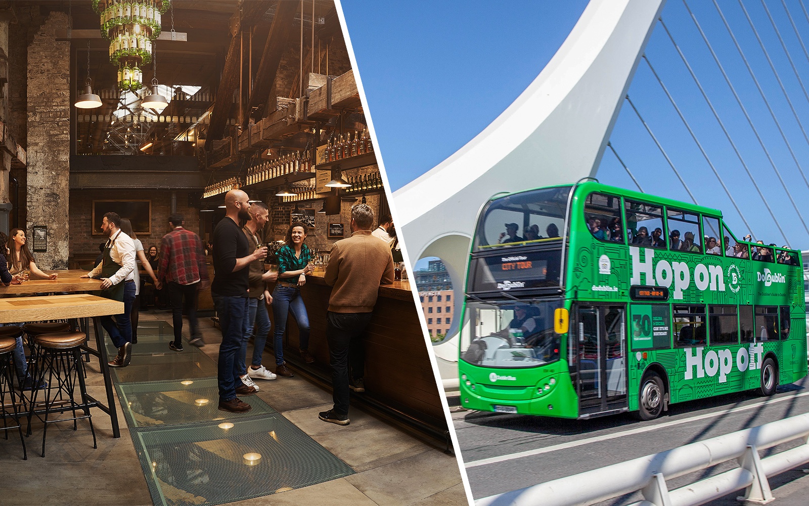 La tua avventura inizia in una delle oltre 30 fermate di DoDublin situate in tutta la città. Basta presentare il biglietto mobile all'autista dell'autobus verde per ricevere la carta d'imbarco valida 24 ore e il biglietto del Piccolo Museo. Per raggiungere la degustazione di whisky della distilleria Jameson nel modo più diretto possibile, resta a bordo fino alla fermata 23 (Aaran Quay), che ti porterà proprio alle porte della distilleria Jameson.