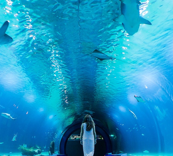Passeggia attraverso spazi immersivi che ricreano i mari e gli oceani del mondo, dove vivono beluga, pinguini, meduse e molto altro.