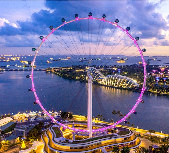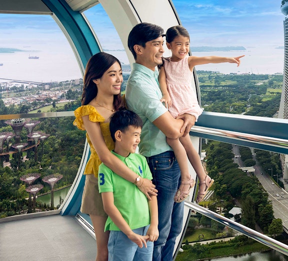 Bekijk iconische monumenten zoals Marina Bay Sands en Gardens by the Bay. Op heldere dagen kun je een glimp opvangen van de buurlanden Maleisië en Indonesië.
