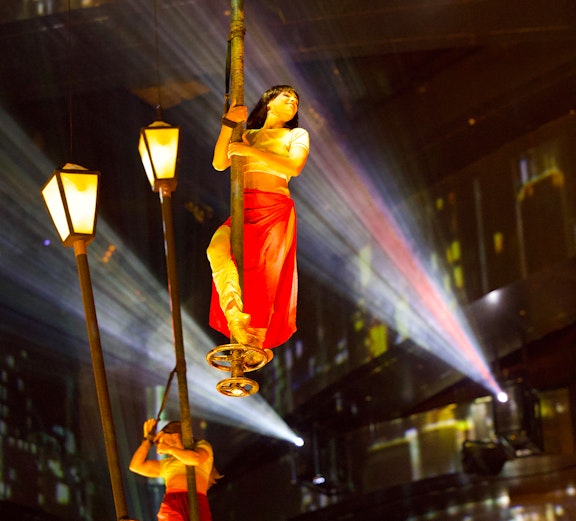 De voorstelling bevat ongelooflijke aqua- en luchtkunsten, waaronder artiesten die van 25 meter hoog duiken.