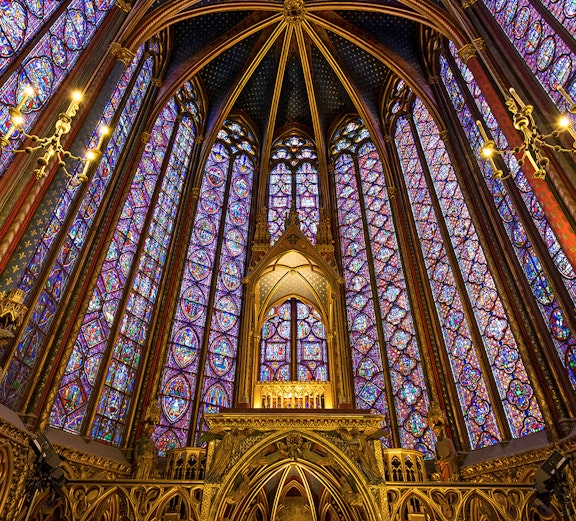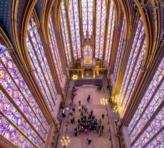 Bewonder later de gotische architectuur en de adembenemende gebrandschilderde ramen met scènes uit de Bijbel in Sainte-Chapelle.