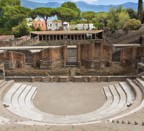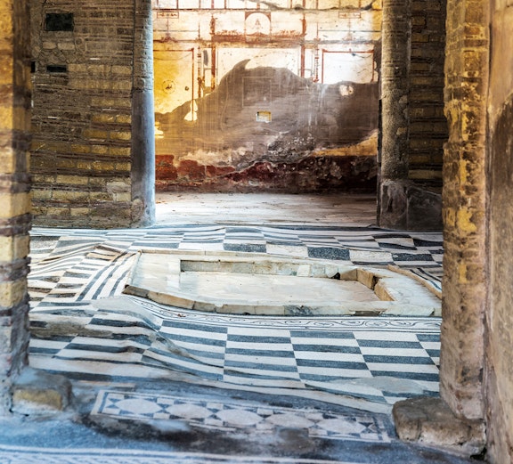 Gå inn i velbevarte romerske ruiner, der hjem, badehus og gater fremdeles gjenspeiler hverdagslivet som ble frosset av Vesuvs utbrudd i år 79 e.Kr.