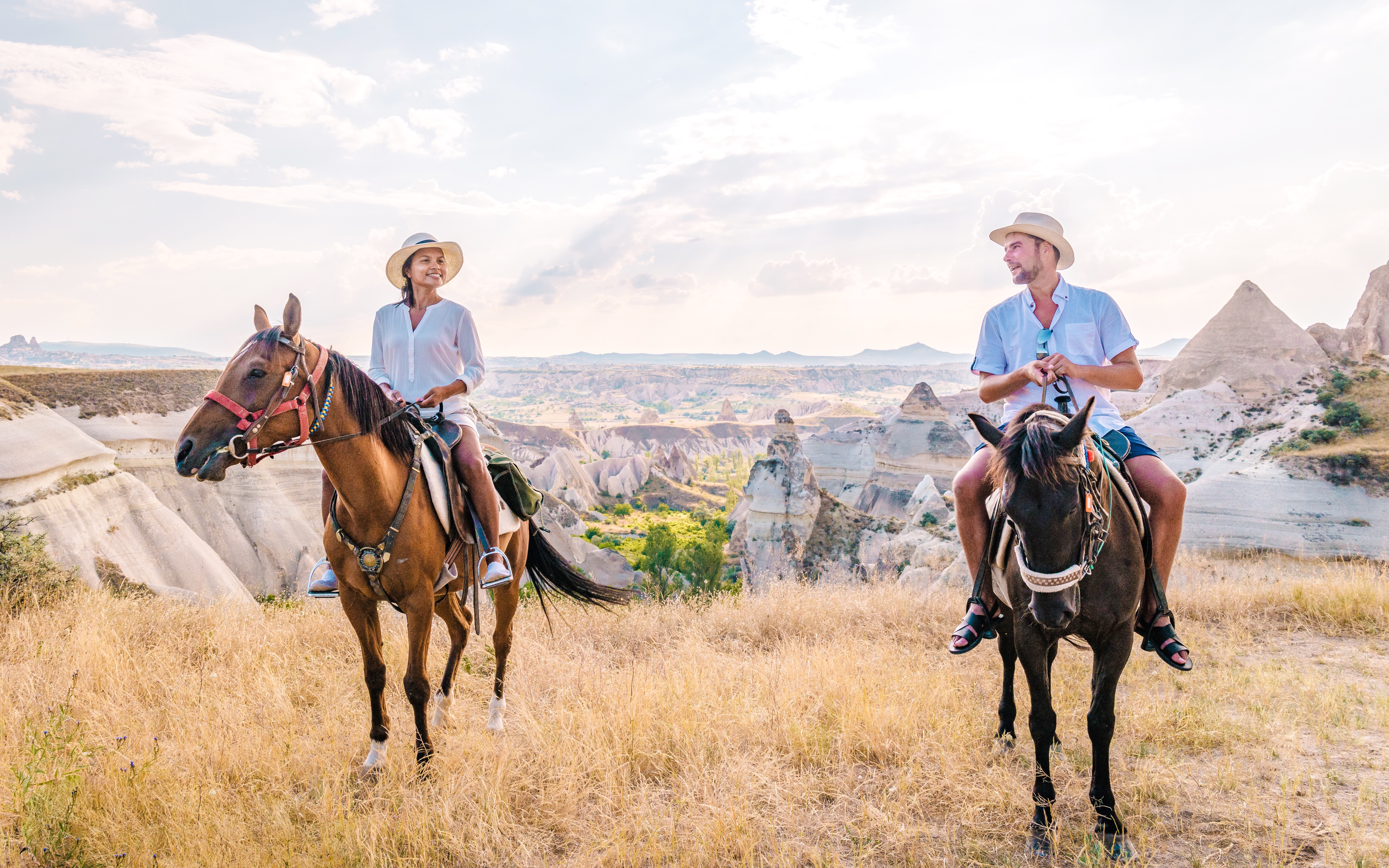Opplev guidede turer på hesteryggen gjennom Rose Valley og Red Valley, forbi hulekirker og de karakteristiske «fe-skorsteinene» i solnedgangen.
