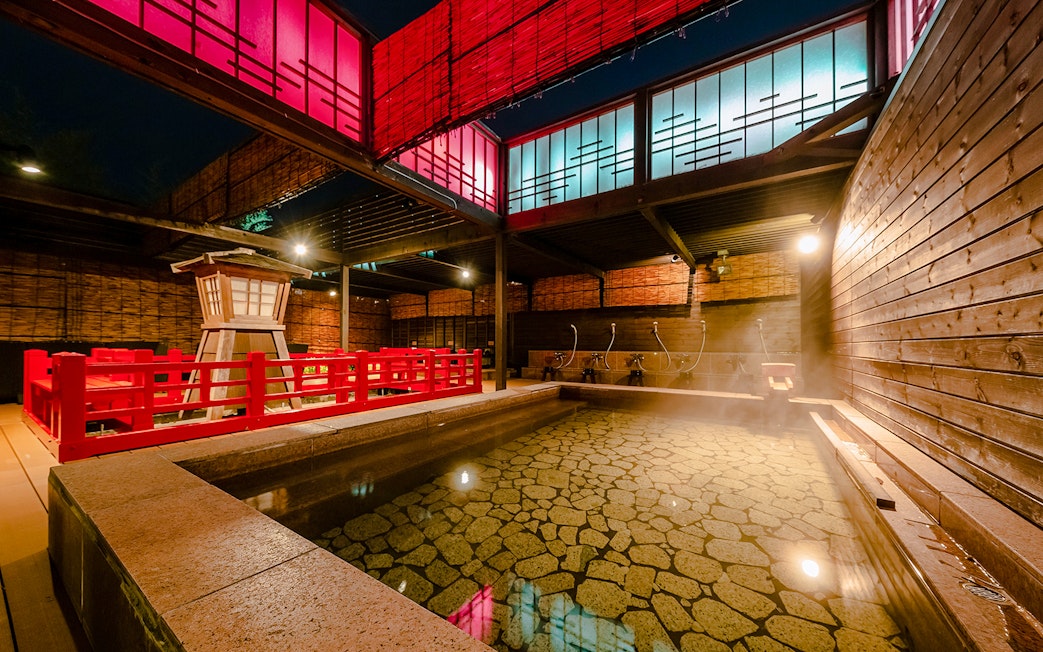 Zanurz się w 26 wyjątkowych łaźniach, w tym w słynnych źródłach Kinsen ("złote") i Ginsen ("srebrne"), łaźniach parowych i saunach kamiennych, a wszystko to w ramach kompletnej ucieczki od wellness.