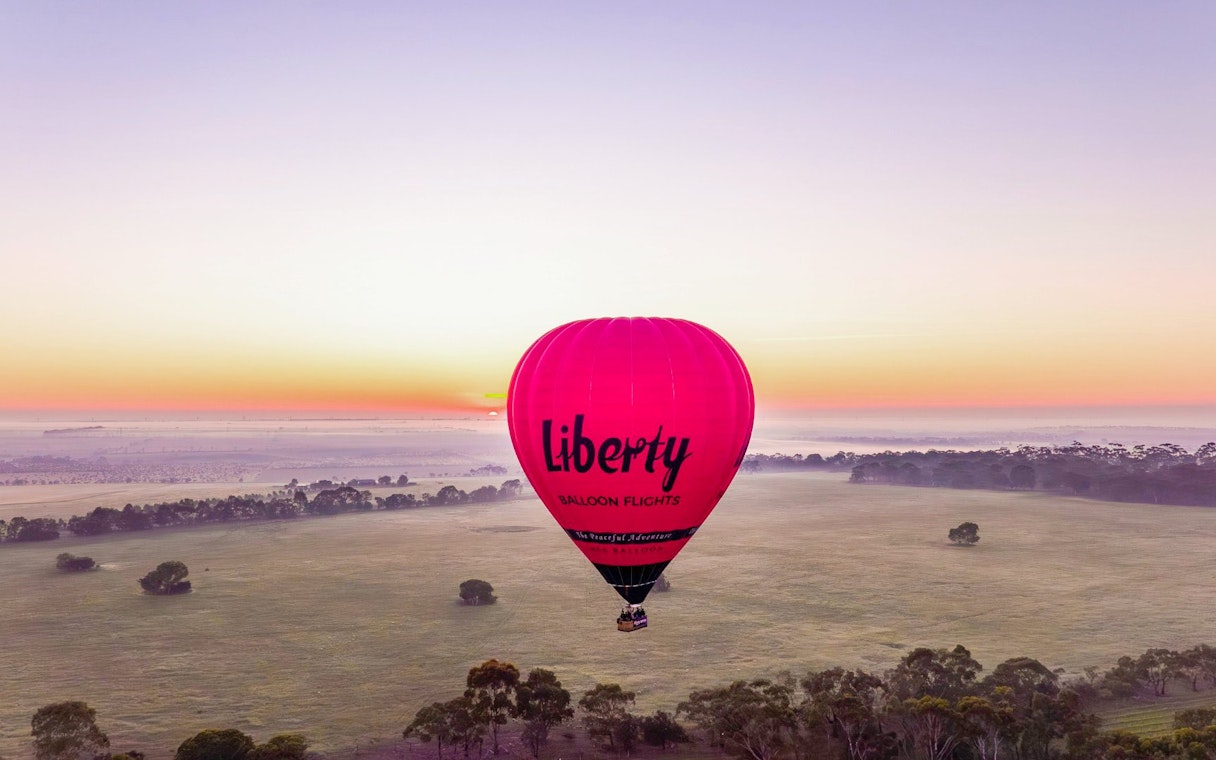 Unieś się nad Geelong i malowniczym początkiem Great Ocean Road w balonie na ogrzane powietrze, podziwiając widoki na zatokę, ocean i wieś o wschodzie słońca podczas 1-godzinnego lotu.