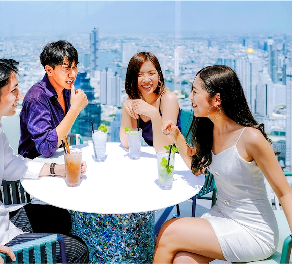 Odwiedź Skyverse na 4. piętrze, a następnie przetransportuj się szklaną windą hydrauliczną między 74. a 78. piętrem, aby dostać się na najwyższy w Tajlandii dach i taras na świeżym powietrzu.