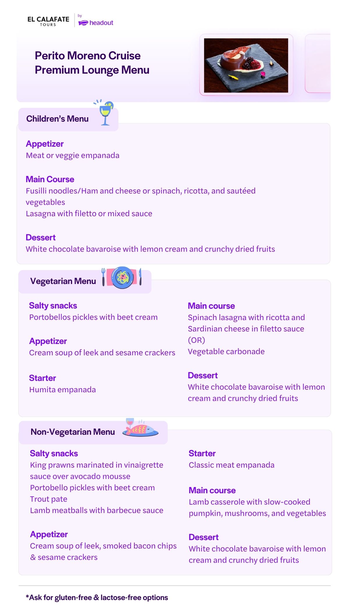 Salon premium i wycieczka do kładki Perito Moreno nie są dostępne dla wózków inwalidzkich i wózków dziecięcych.