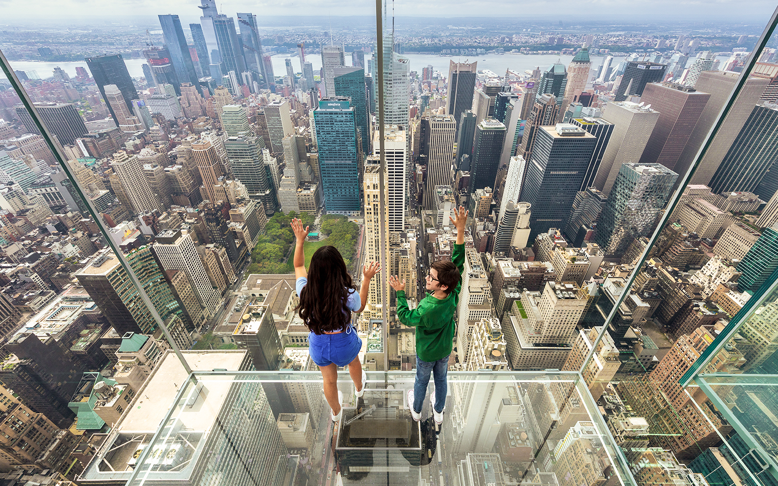 Wejdź do przezroczystych szklanych skyboxów zawieszonych ponad 1100 stóp nad miastem, aby podziwiać ekscytujące panoramiczne widoki na Manhattan, panoramę miasta i nie tylko.