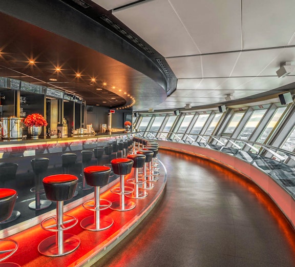 Zrelaksuj się przy drinku w Sphere, najwyżej położonym barze w Berlinie, wznoszącym się nad panoramą miasta, idealnym do zrobienia niezapomnianego zdjęcia.