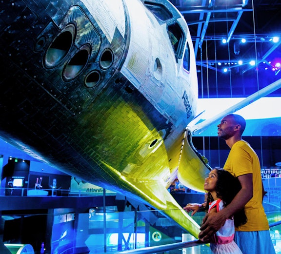 Mergeți pe urmele astronauților în zonele Heroes & Legends și Cursa spre Lună, stați sub masiva rachetă Saturn V, explorați Space Shuttle Atlantis® și atingeți chiar și fragmente lunare autentice.