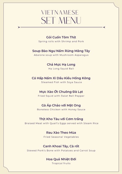 Set Menu(pentru până la 50 de oaspeți)