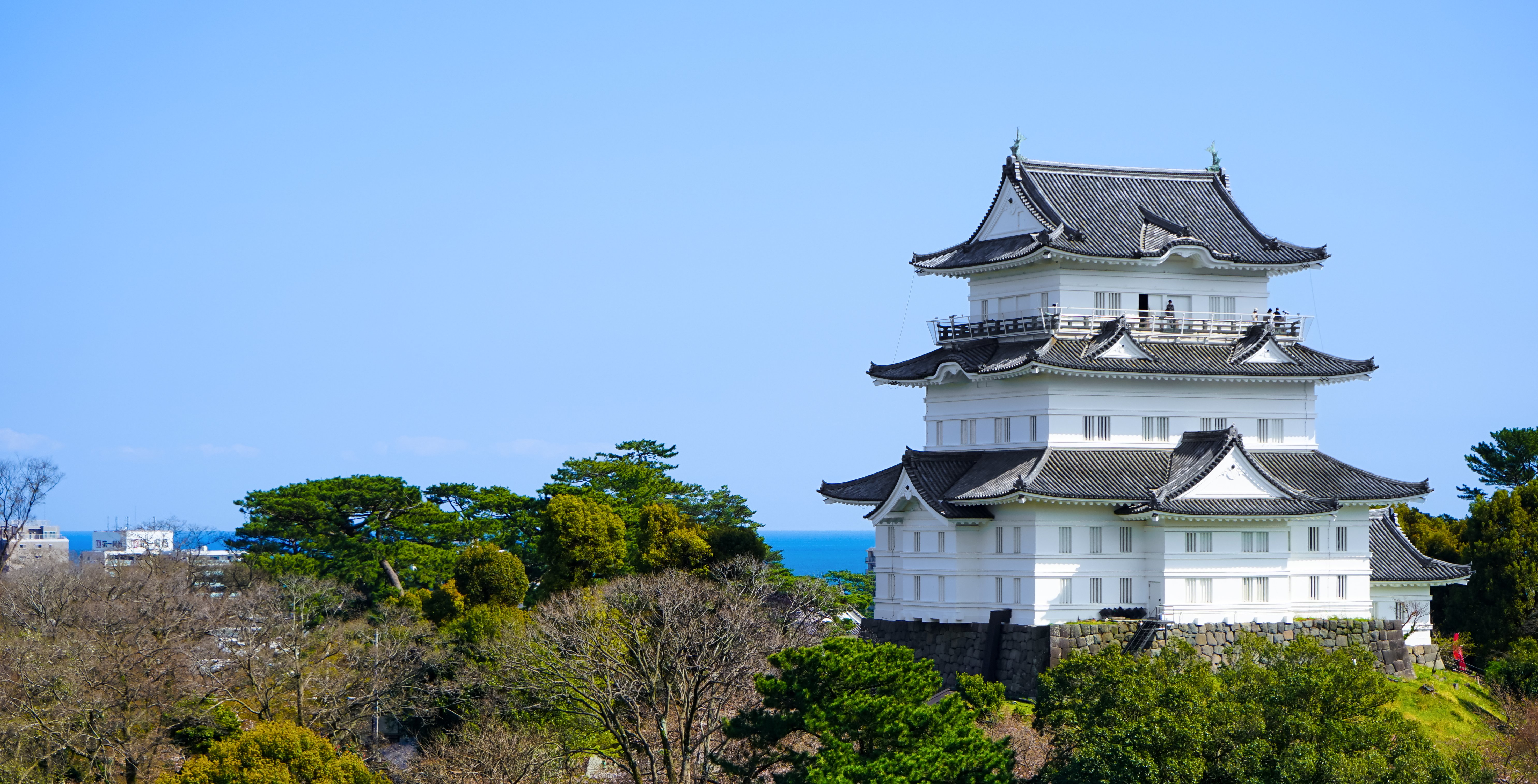 Поднимись на обзорную площадку на верхнем этаже, откуда в ясную погоду открывается панорамный вид на Одавару, залив Сагами и окрестности.