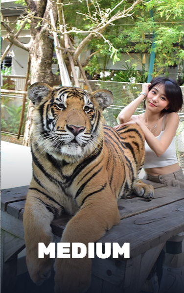 - Безопасность является приоритетом, поэтому этот опыт ограничен для гостей младше 3 лет, а гости младше 15 лет и ростом ниже 1,6 м (5,25 фута) не могут встретиться с маленькими, средними и большими тиграми. Они могут взаимодействовать только с самыми маленькими или новорожденными тигрятами.