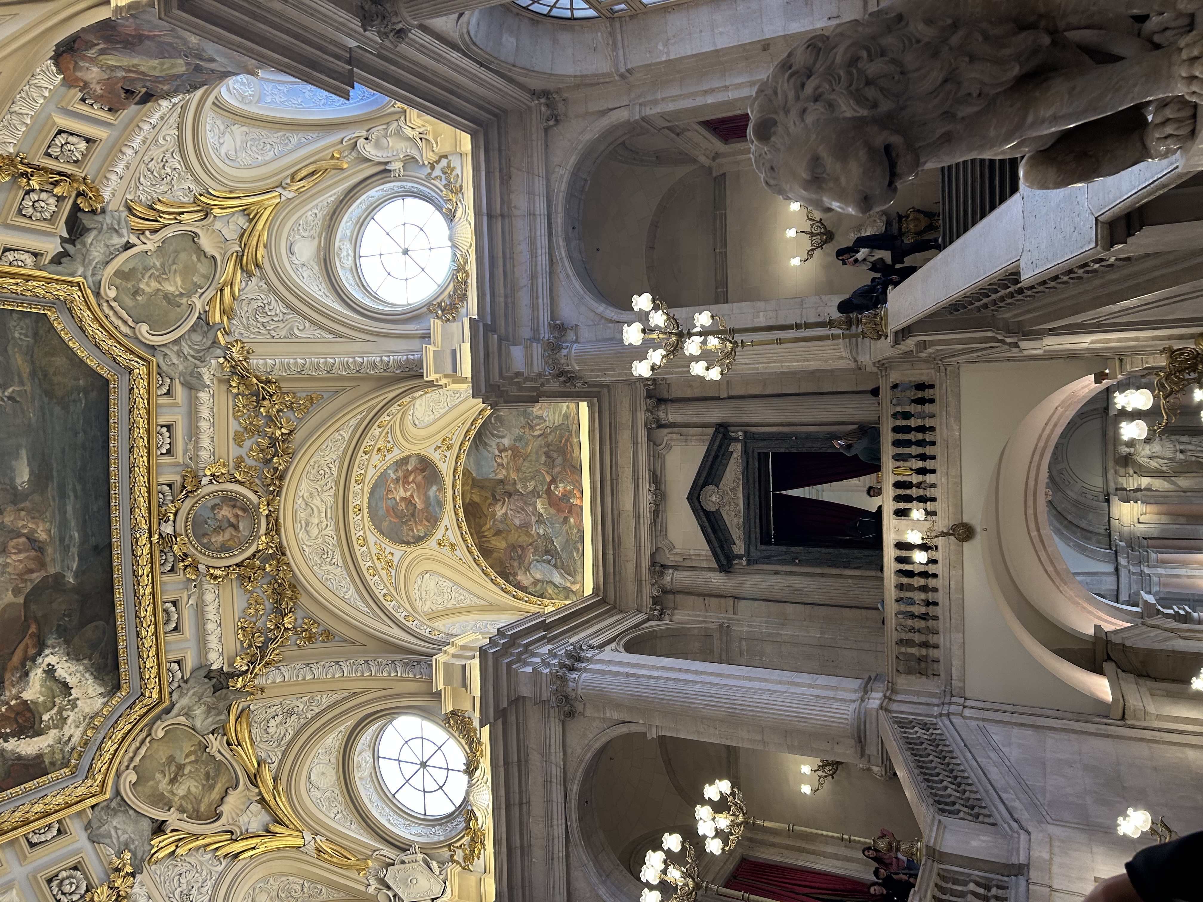 Beundra mästerverk av konstnärer som Goya och Giordano, plus gamla Väggbonader och utsmyckade kungliga möbler i hela Palatset.