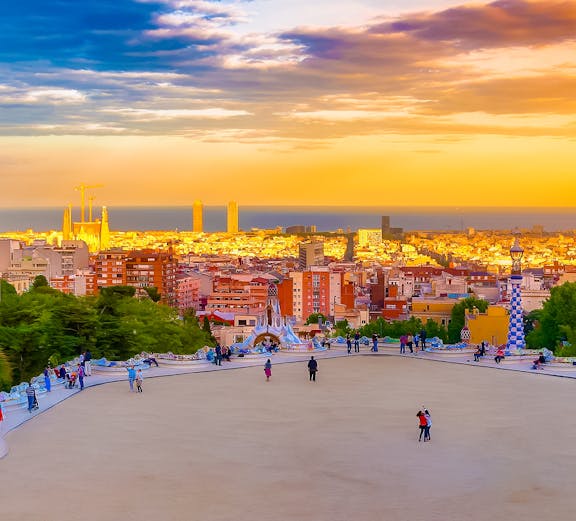 Vandra genom Park Güells nyckfulla mosaiker, frodiga trädgårdar och klättra upp på de tre korsens kulle för panoramiska stadsvyer.