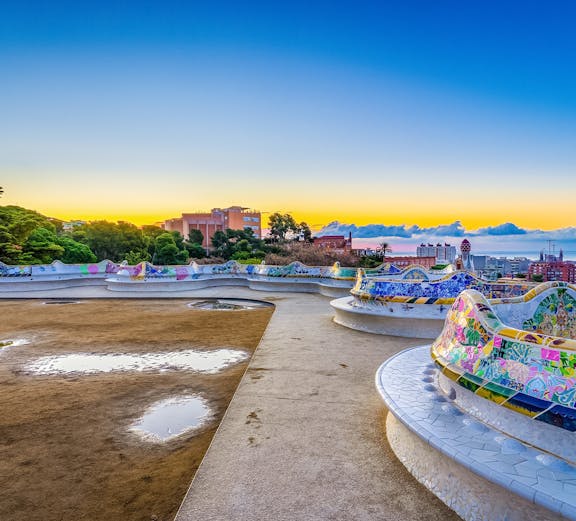 Vandra genom nyckfulla mosaiker, färgglada skulpturer och den berömda serpentinbänken med utsikt över Stadssiluetten.