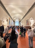 Kuyruk beklemeden hızlı giriş. Kalabalığın yoğunlaşmaması için ayrı salonlar. Bir tarafta heykeller, diğer tarafta tablolar. Pencerelerden şehir manzarası ve nehir manzarası; Ponte Vecchio'nun muhteşem manzarası.