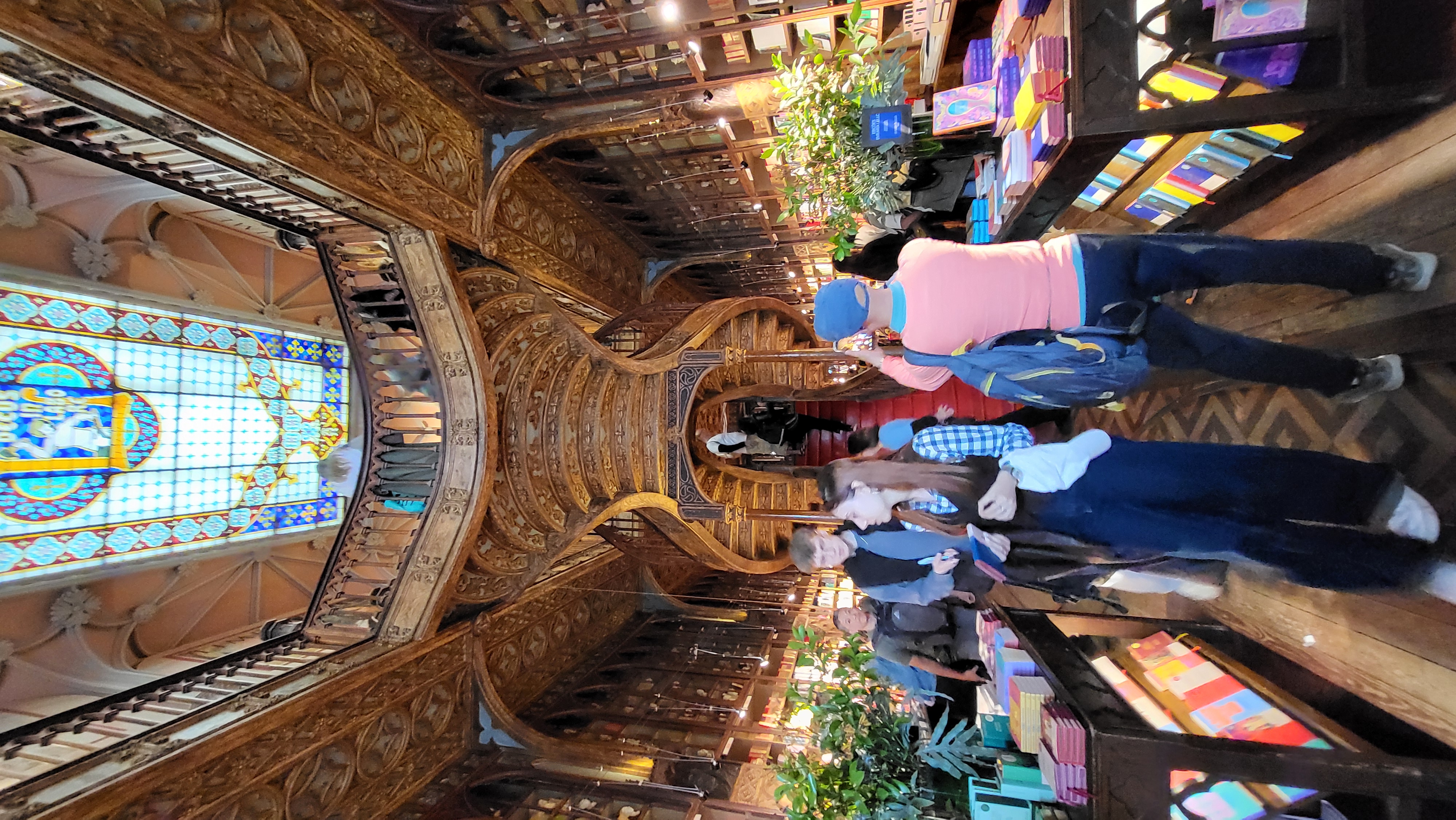 Kitap mağazası kesinlikle güzel ve kesinlikle girmeye değer. Tek dezavantajı insanlar. İnsanlardan şikâyet ettiğimi düşünürseniz, açıkçası ben de sorunun bir parçasıyım. Ancak daha fazla insan ambiyansın, manzaranın, güzelliğin tadını çıkarmak isteyen herkes konusunda daha bilinçli olsaydı ve 10 saniyelerini ayırıp hızlı bir fotoğraf çekip yollarına devam etselerdi daha fazla insan bunu yapma fırsatı bulurdu. Gerçek şu ki, her turist sosyal medya fenomeni değildir, bu yüzden fotoğrafınızı çekin ve yoldan çekilin. Çekiminizi kontrol etmenize ve 10 kez yeniden çekmenize gerek yok, her gün buradan geçmeye çalışan ve o kareyi yakalamaya çalışan yüzlerce insan var. Eğer kesintisiz fotoğraf çekmek bu kadar önemliyse özel bir tur planlayın. Ve dürüst olmak gerekirse, bu her şey için geçerli, eğer fotoğraf için popüler olduğunu bildiğiniz bir şeyin önünde duruyorsanız ve insanlar bekliyorsa. Üç hızlı fotoğraf çekin, kameranız canlı olsun, en iyi kareyi seçip devam edebilirsiniz, özellikle dijital düzenleme ve yapay zeka düzenlemesi ile tek bir insan grubunun tek bir fotoğraf için bir ila iki hatta üç dakika sürmesi için hiçbir neden yoktur.
