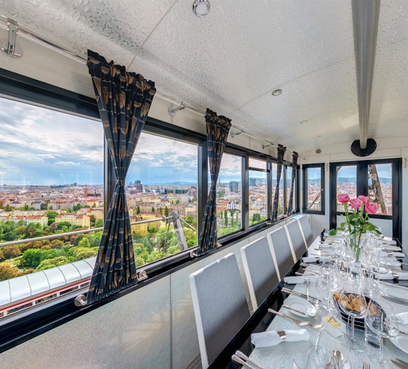 Spot landmarks like the Vienna Woods, Danube River, St. Stephen’s Cathedral, and the mountains to the west as you float above the city in the iconic 19th-century red carriages.